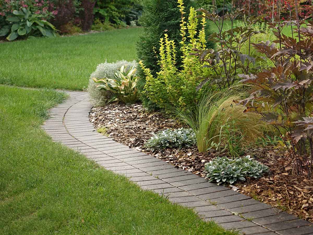 10. Grey Brick Path Edging With Dark Mulch — Clean and Modern