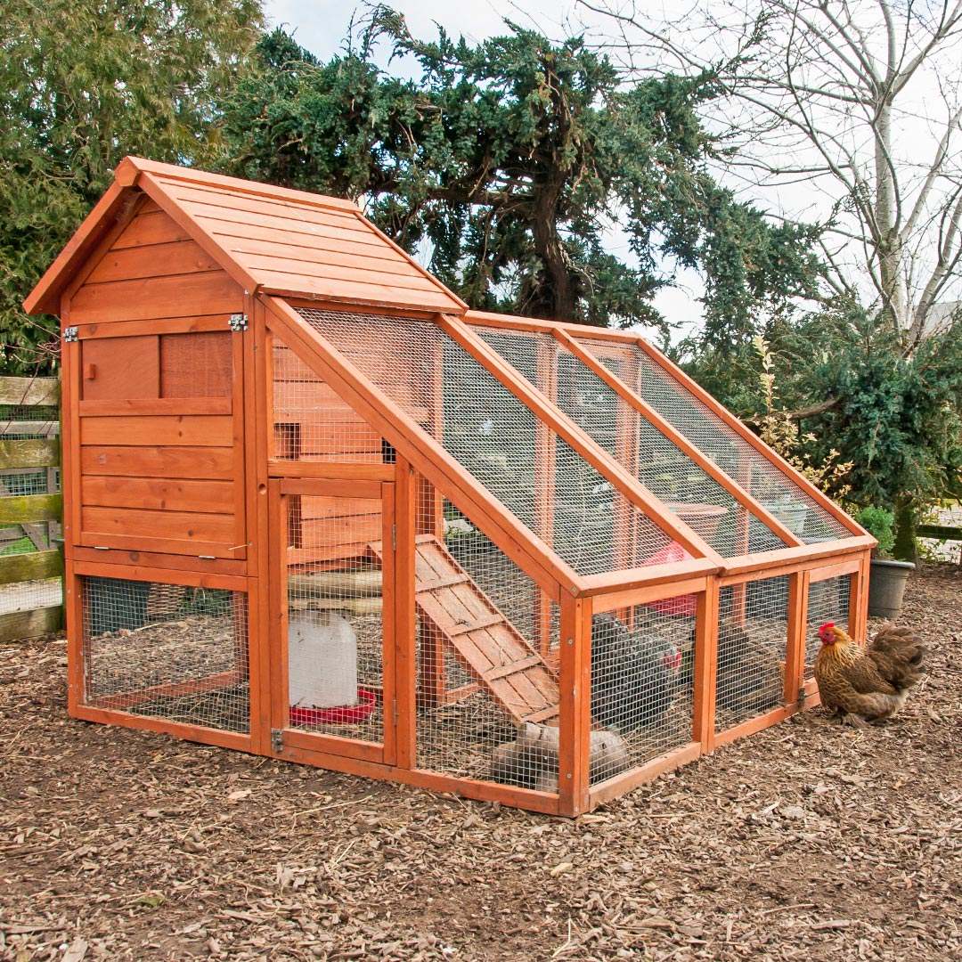A spacious run with mesh walls lets your feathered friends enjoy the outdoors safely. The main door is solidly built, offering easy access for cleaning and maintenance.