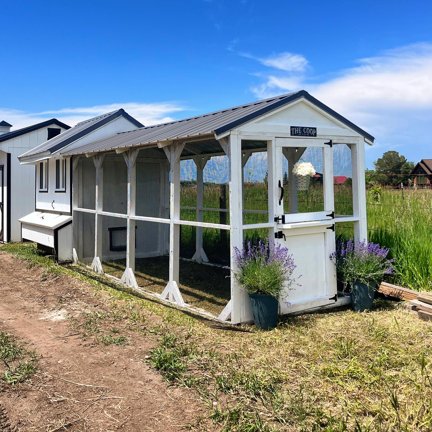 This coop stands out with its crisp white frame and clean lines, giving a modern twist to a classic setup. Its wire mesh siding provides excellent ventilation while keeping critters out, making it practical for both hot and cold weather.