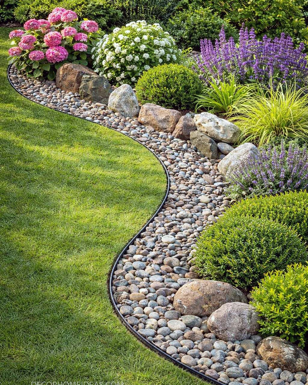 1. Pebble River Edging with a Floral Payoff