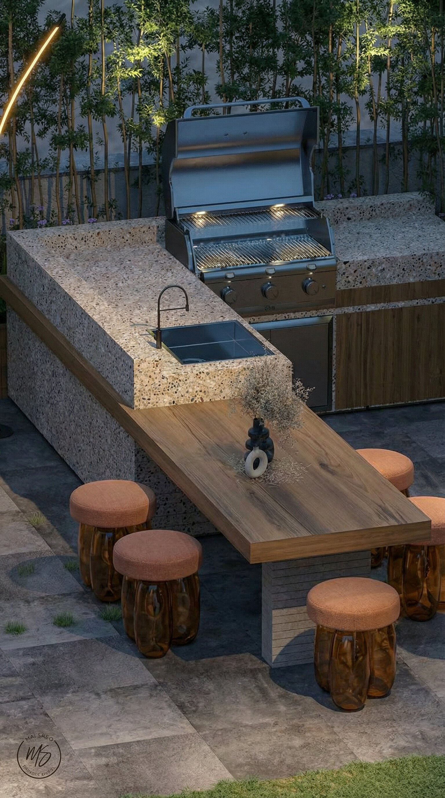 31. Chill Vibes with a Sleek Outdoor Cooking Spot