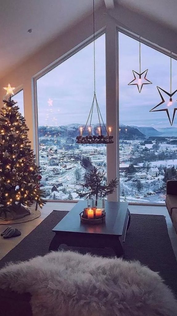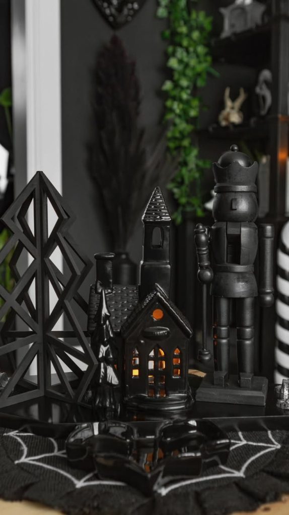 The beauty of this trend lies in its sophistication. You’re moving away from traditional bright reds and greens towards something more mature and dramatic. Paper star decorations in black with metallic trim can add geometric interest whilst maintaining the moody aesthetic.