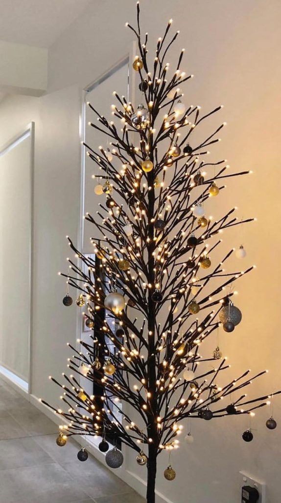 These trees work well in modern homes. They take up less space than traditional trees. You can hang just a few special ornaments on each branch.