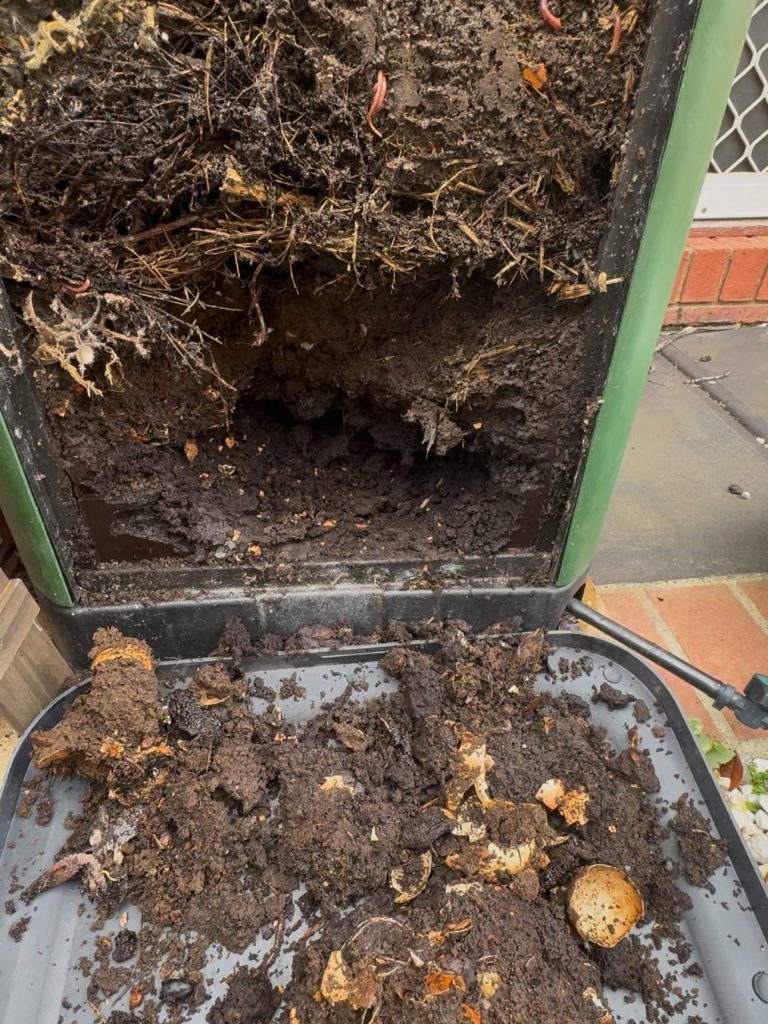 Worm-friendly foods: Vegetable scraps, fruit waste, coffee grounds, crushed eggshells, shredded paper