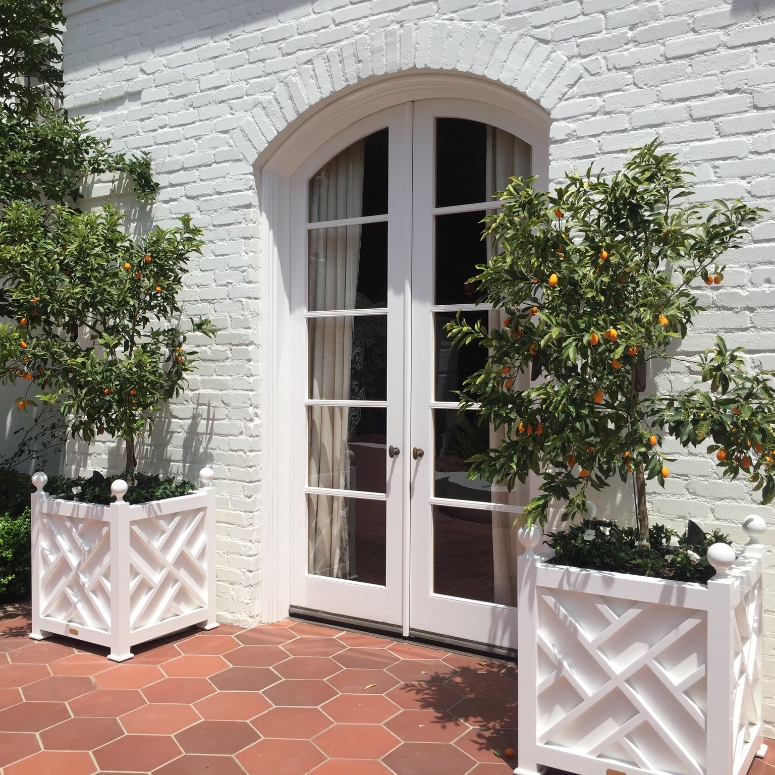 2. Kumquat Trees in White Planters by a French Door
