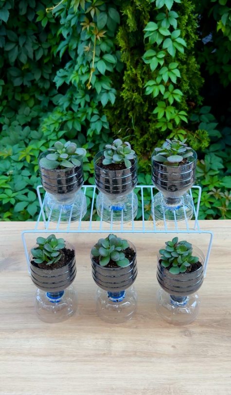3. Turn plastic bottles into self-watering planters
