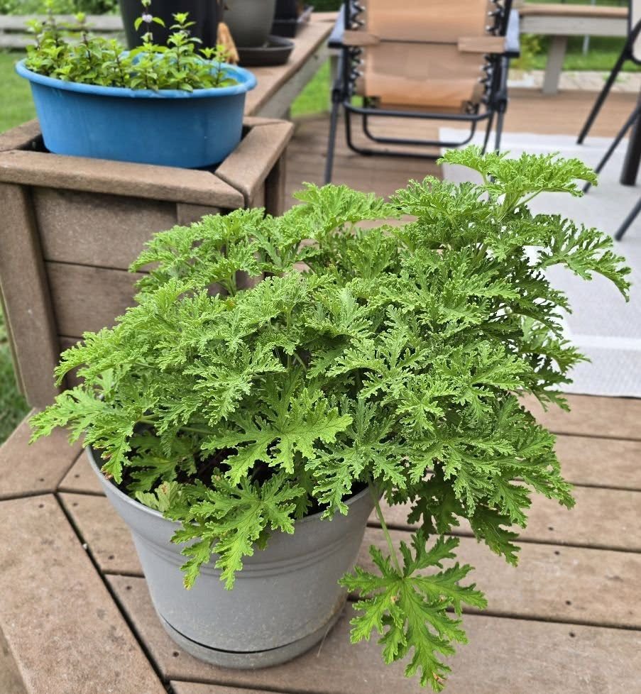 All types of basil have a strong smell when you touch the leaves. The oils are pungent and mosquitoes don’t like them.