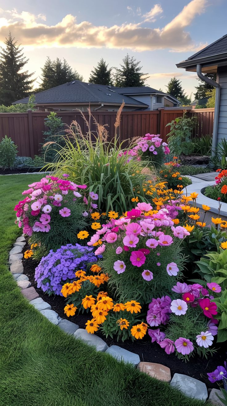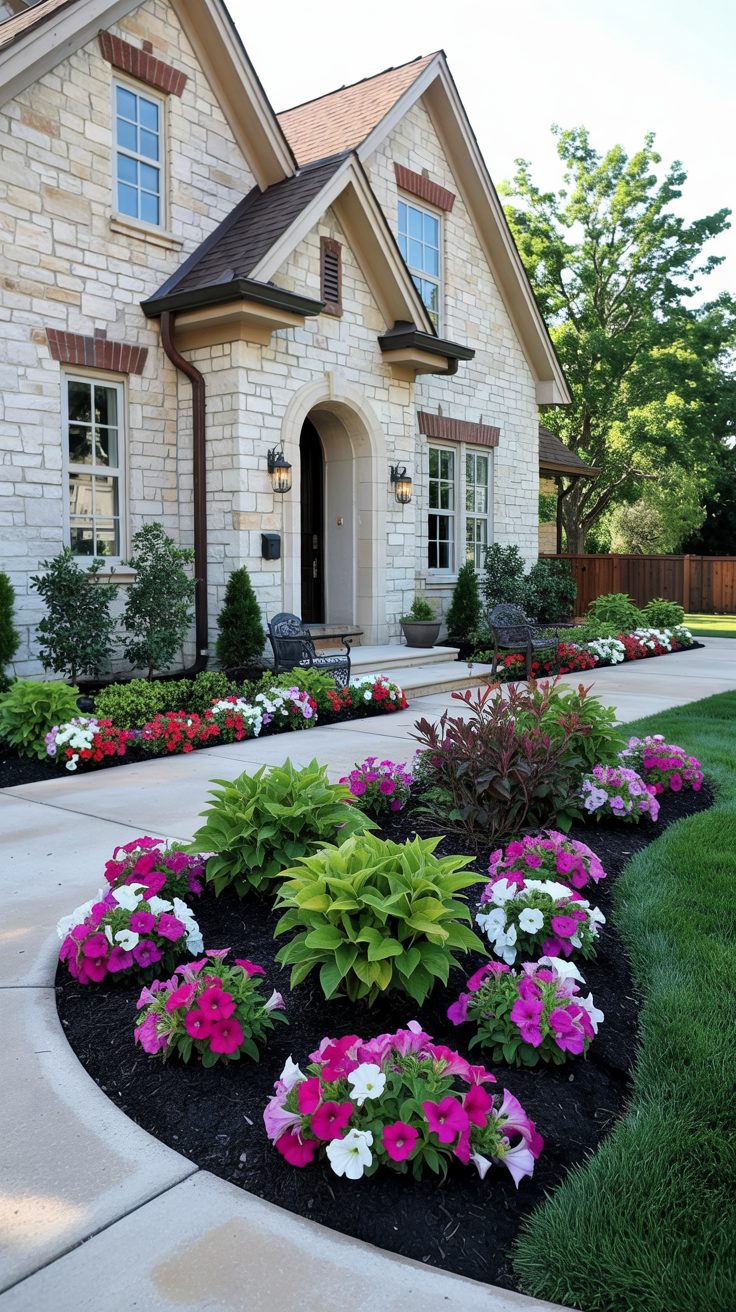 Consider incorporating similar elements in your own yard. A mix of colorful flowers and hardy plants can enhance curb appeal while being low-maintenance. For more ideas, check out stunning flower bed ideas or modern front yard ideas.